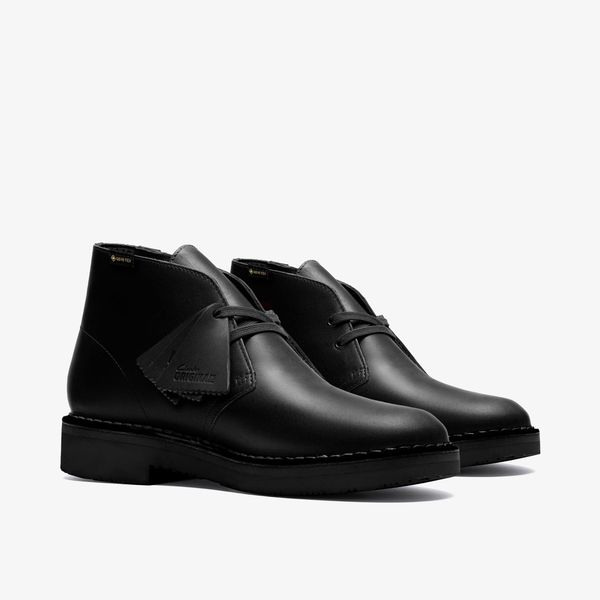 Cultural cachet and design DNA: no shoe is quite like the Clarks Originals Desert Boot. Born in the ’50s, its minimal, progressive style sparked a worldwide footwear revolution . And every design detail today remains true to that first pioneering pair. Here, the boot’s crafted, clean lines are enhanced with premium black leather with a waterproof GORE-TEX® membrane and finished with an unfussy lace fastening.