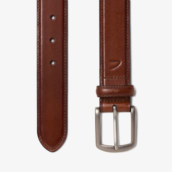 Elevate your accessory collection with this distinctive leather dress belt. Featuring a sleek silver-tone harness buckle and tonal burnishing, it’s versatile enough to pair with a wide range of outfits and offers a secure, adjustable fit.
