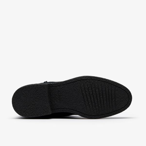Durable TR (thermoplastic rubber) sole with a subtle crepe texture delivers a crafted, sleek look